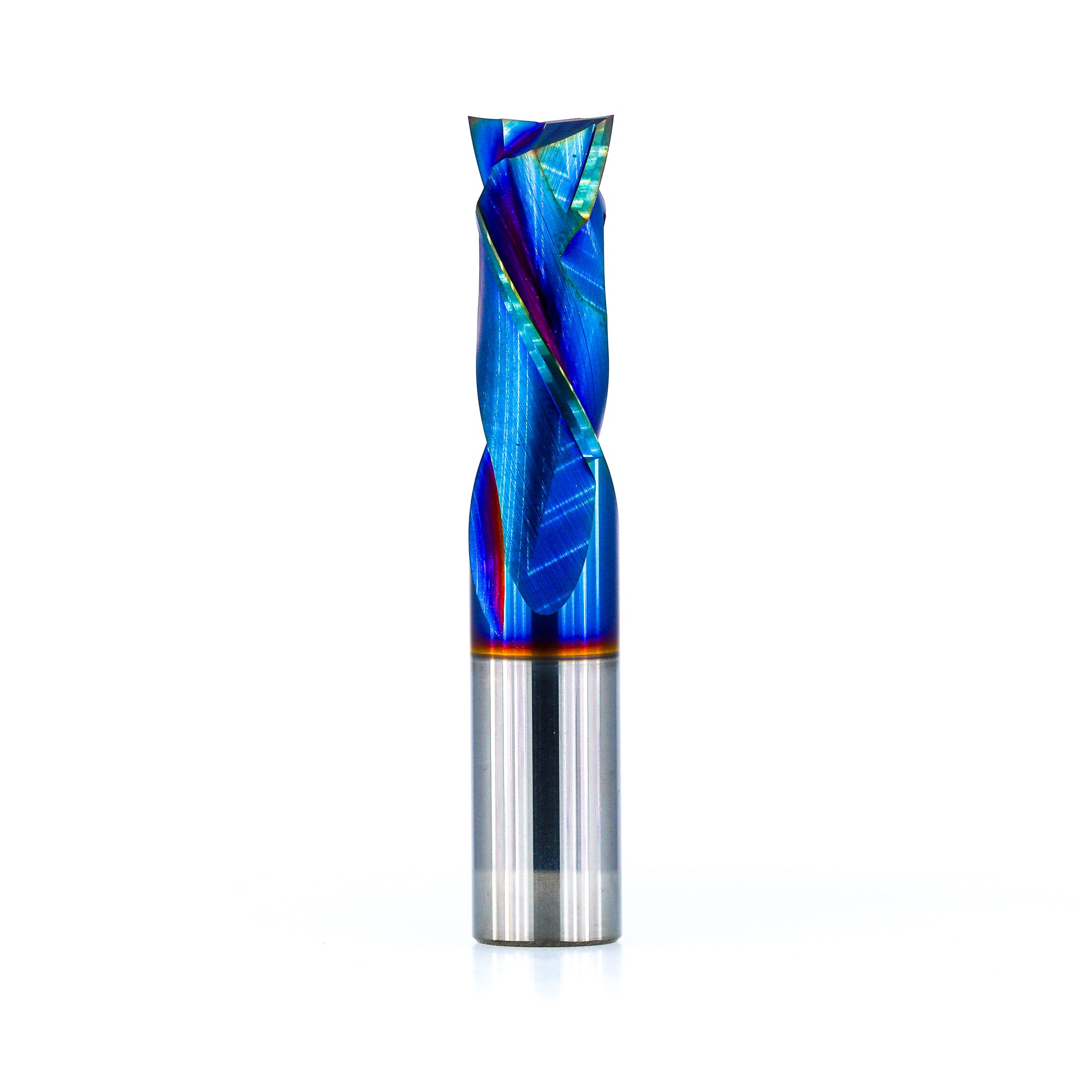 Manufactured from the same ultrafine grain carbide as our raw version, but upgraded with a Nano Composite (NaCo) coating that delivers a major leap in performance. Expect up to 3× longer tool life, 30–40% cooler cutting, and a noticeable reduction in edge burring overtime compared to uncoated bits. The low-friction surface keeps chips moving and resists resin build-up, letting you run faster feed rates without sacrificing finish. The dual-flute compression geometry ensures flawless top and bottom edges on laminates, veneers, and ply.