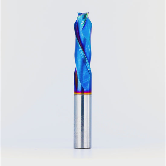 Manufactured from the same ultrafine grain carbide as our raw version, but upgraded with a Nano Composite (NaCo) coating that delivers a major leap in performance. Expect up to 3× longer tool life, 30–40% cooler cutting, and a noticeable reduction in edge burring overtime compared to uncoated bits. The low-friction surface keeps chips moving and resists resin build-up, letting you run faster feed rates without sacrificing finish. The dual-flute compression geometry ensures flawless top and bottom edges on laminates, veneers, and ply.