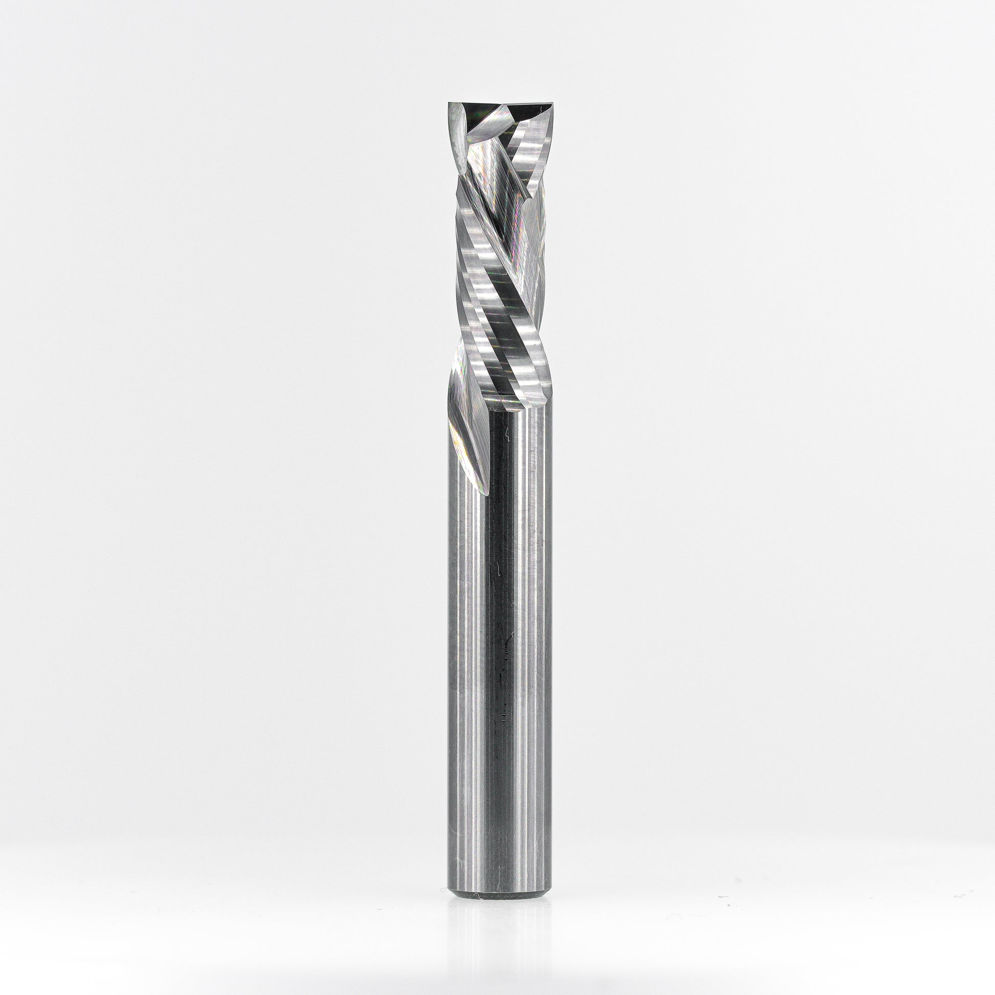 Precision-ground from ultrafine grain carbide, these compression spirals offer exceptional sharpness and edge retention. The 2-flute compression geometry pulls fibres toward the centre, delivering chip-free edges on both faces of laminates, ply, and veneered boards. Perfect for professionals wanting reliable performance and a clean finish without the cost of coatings.