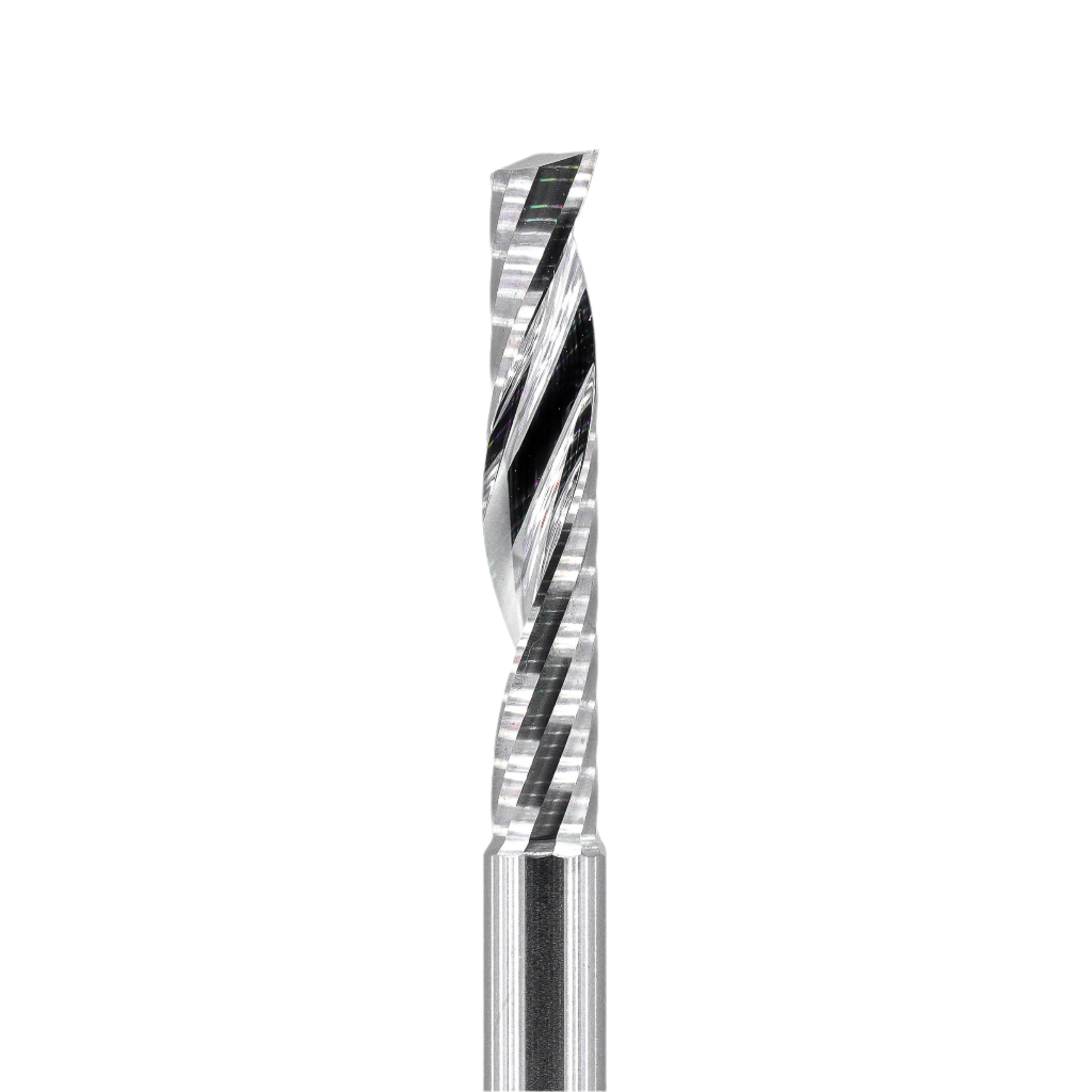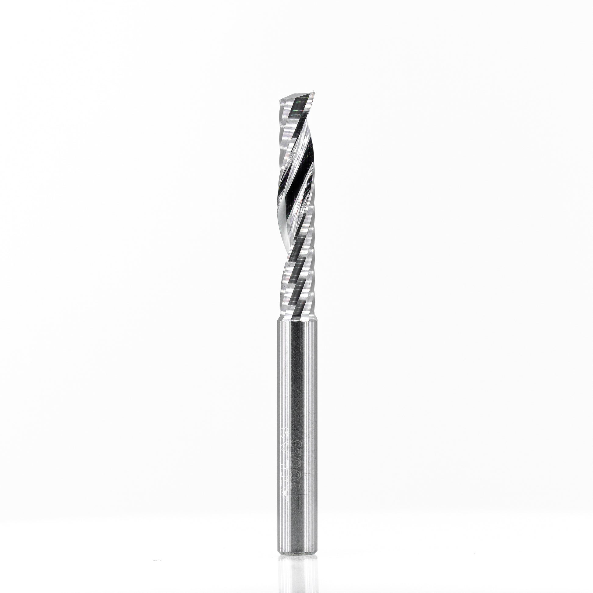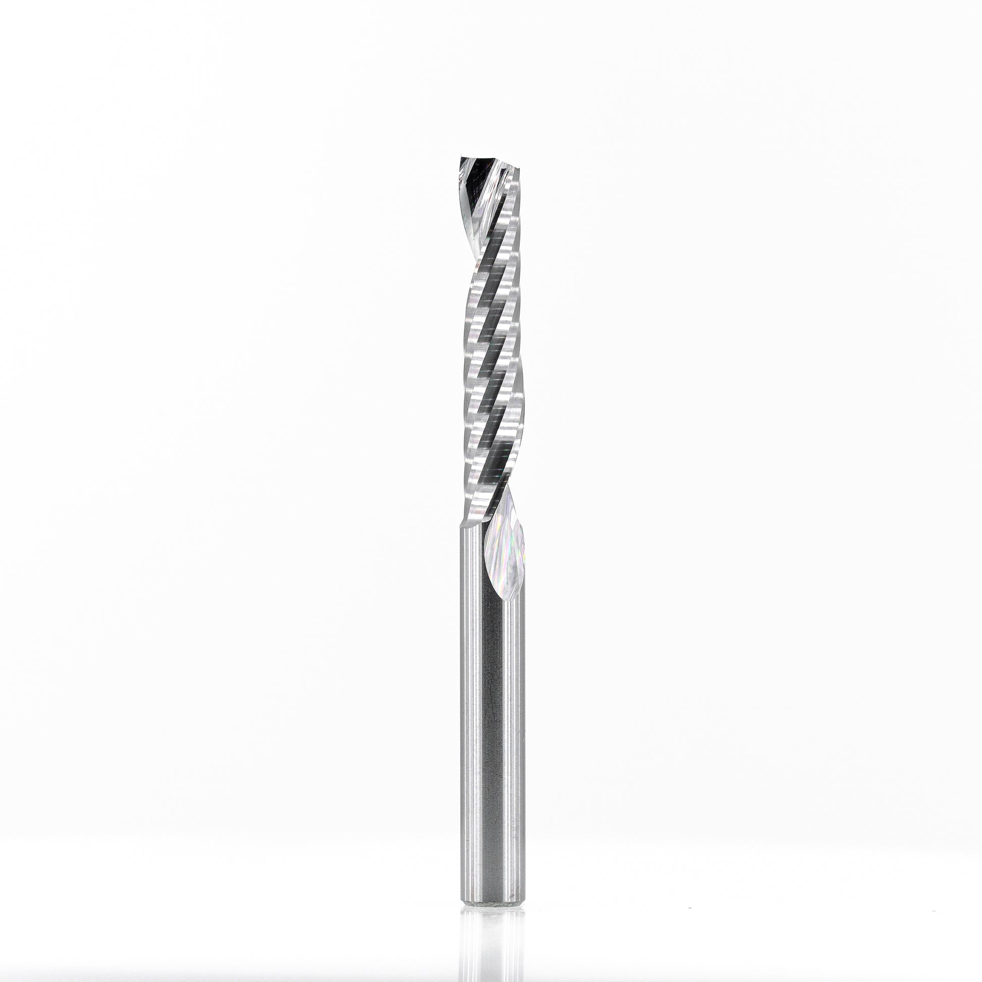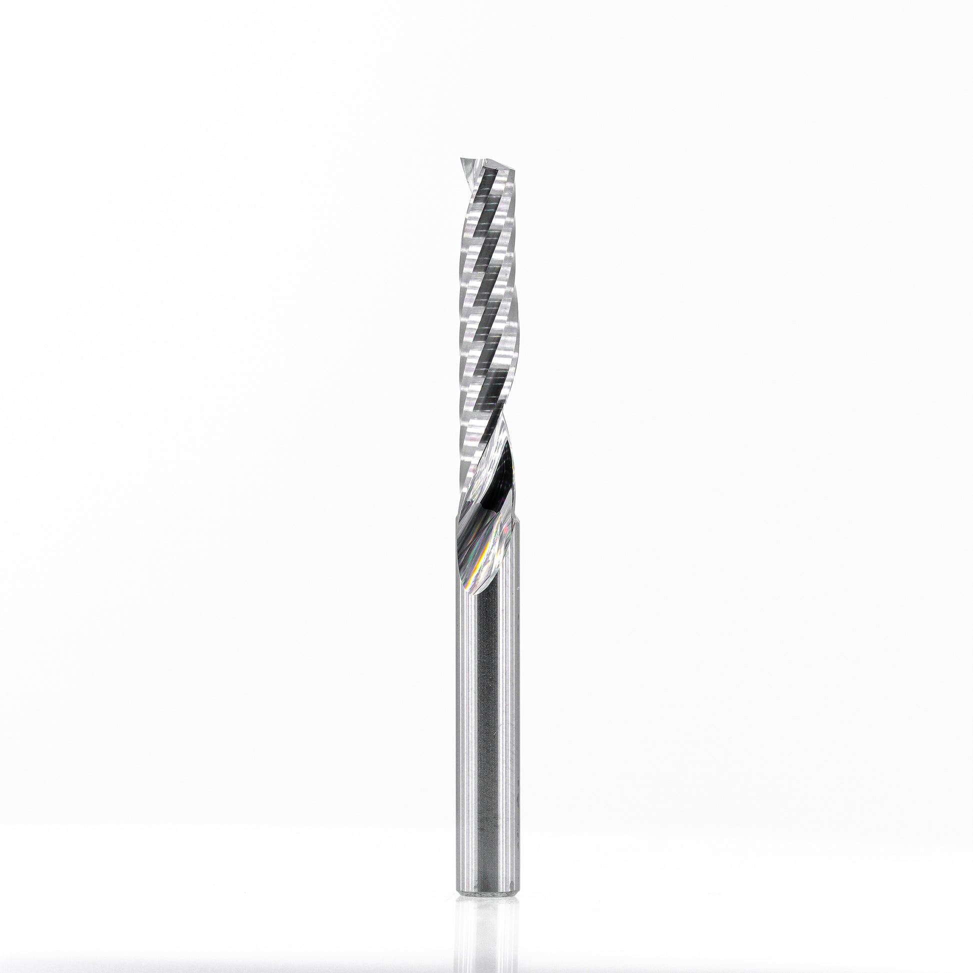 Engineered for precision and versatility, our single flute up-spiral bits are designed with optimized geometry to deliver superior edge quality in plastics, wood, and other general-purpose materials. The wide-open flutes allow for mass chip evacuation, while the high helix angle and razor-sharp cutting edge reduce heat buildup and ensure a clean, smooth finish—far outperforming standard up-spiral geometries.